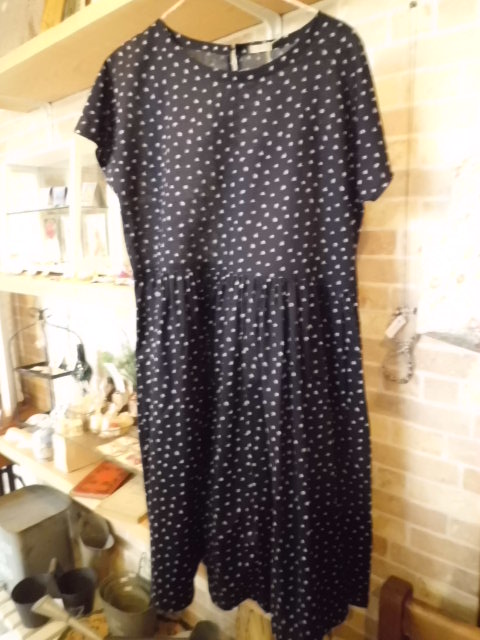 紺色の素敵な生地のワンピース。