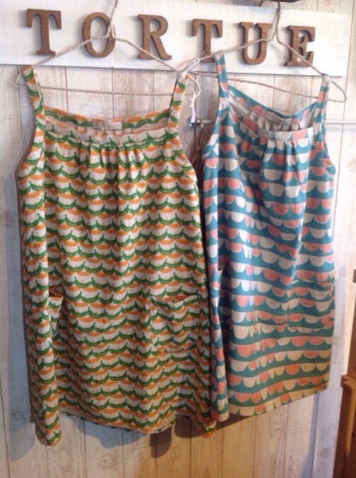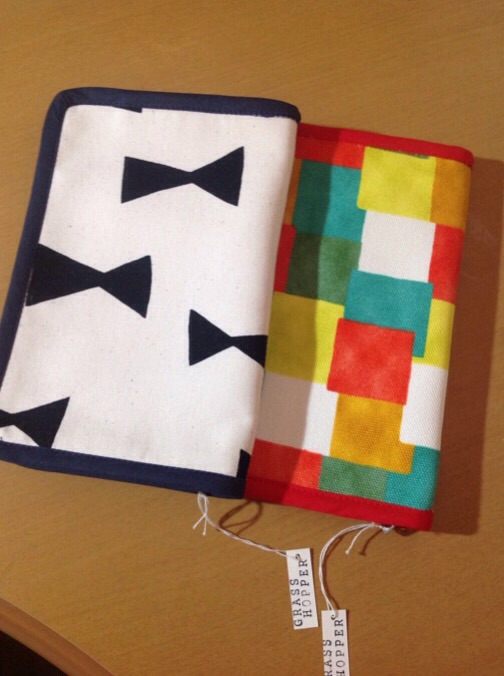 グラスホッパーさんのコットンリネンのエプロンと母子手帳ケース。