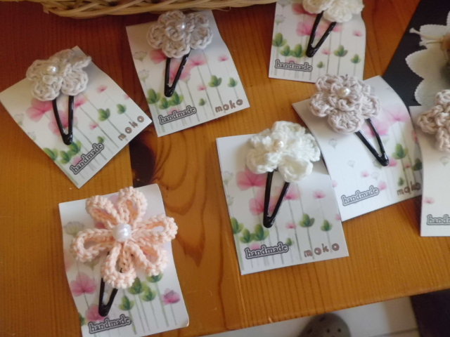mokoさんのお花パッチンピンと麻紐のかごになります。
