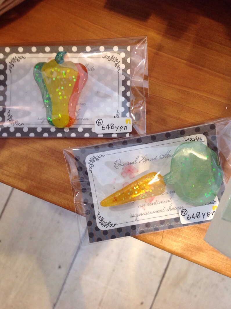 パプリカやにんじんのピアス、ブローチも揃ってます。