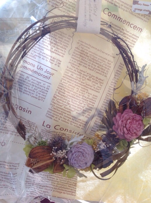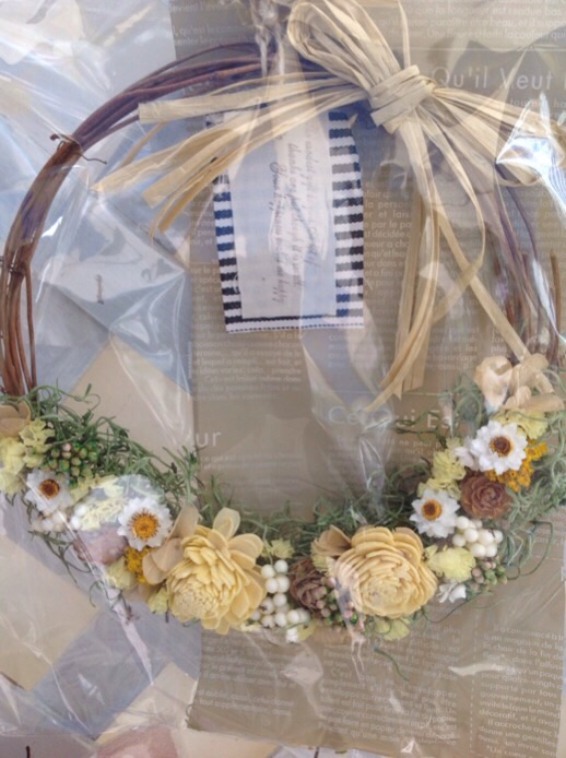 黄色やピンクなどちょっと大人のリースなので場所を選ばず飾れますよ〜