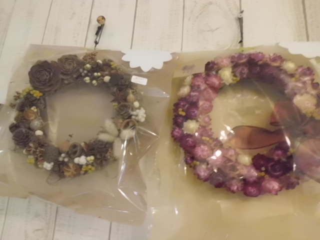 秋らしいリースが沢山(右のカイガラソウのリースは後1点です。)
