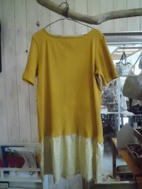 切り替えワンピースのイエローとブルー