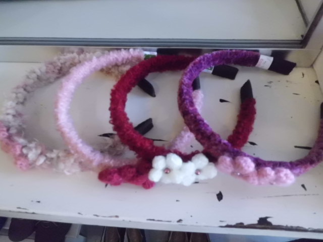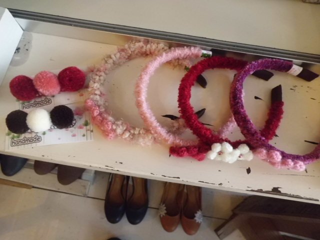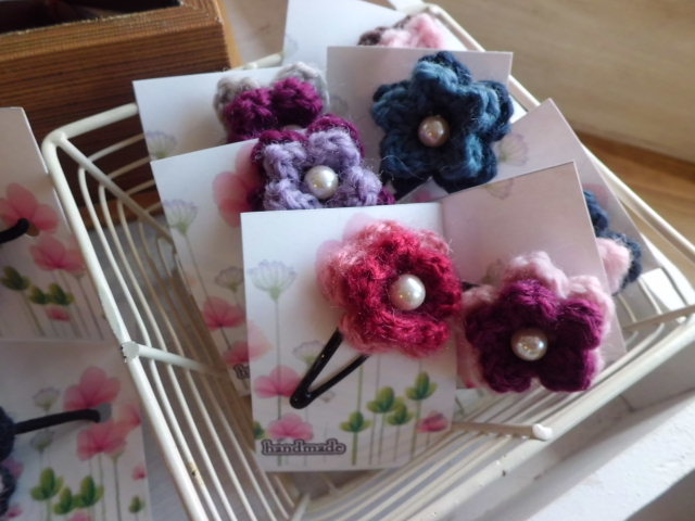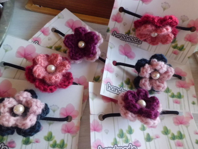 手編みのカッチン留めにヘアゴム。。