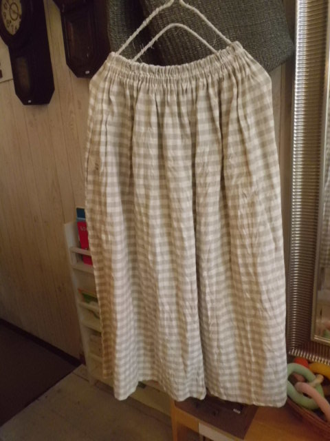 スカートもコットンリネンのチェックでポケット付きです。